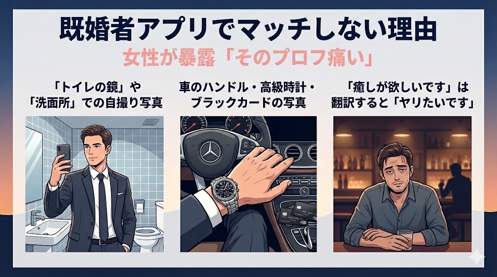 「Cuddle(カドル)で全然マッチしない…」 そう悩みつつも、惰性で毎月9,980円の課金を続けていませんか? 実は、カドルは既婚者マッチングアプリの中でも「30代〜40代前半が中心」で、かつ「ビジュアル(写真)重視」という、非常にシビアな戦場です。 カドルで苦戦するのはある意味当然なのです。 結論からいうと、カドルで苦戦した人が、会員層の違う「既婚者クラブ」や「ヒールメイト」に無料登録した途端、嘘のようにマッチングするというケースは珍しくありません。 そこでこの記事では、カドルでマッチング...既婚者アプリでマッチしない理由を女性が暴露「そのプロフ痛い」
